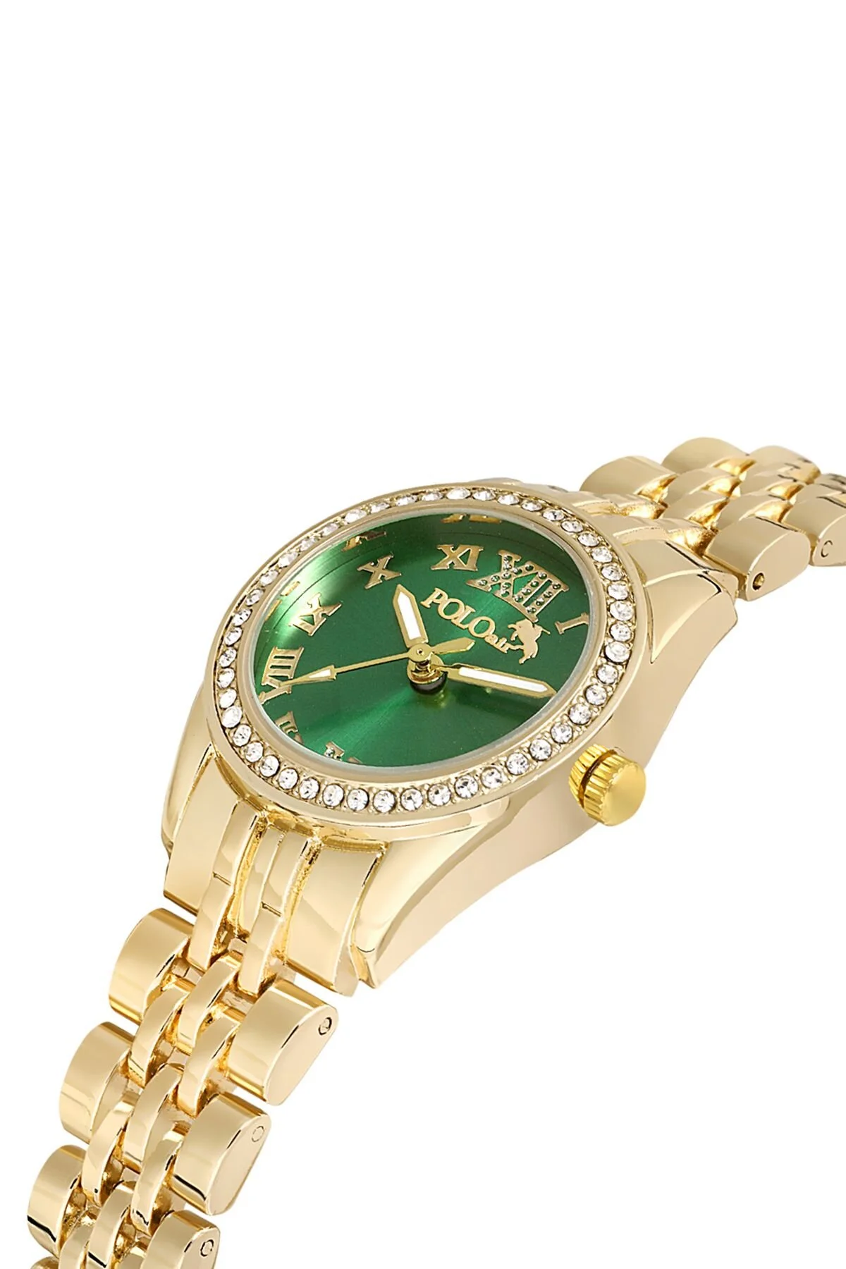 ساعت مچی زنانه با شماره رومی Polo Air مدل Gold Yeşil PL-1506B3x