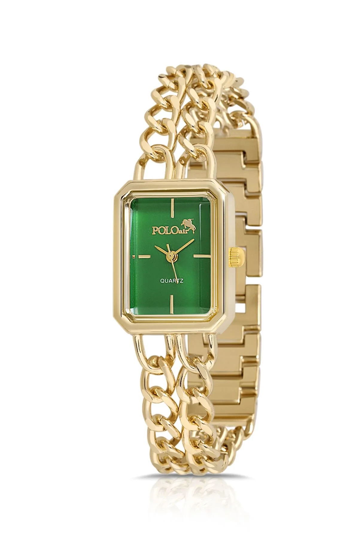 ساعت مچی زنانه Polo Air با بند زنجیری و ترکیب دستبند رنگی و سنگ زبرجد مدل PL-1503B3