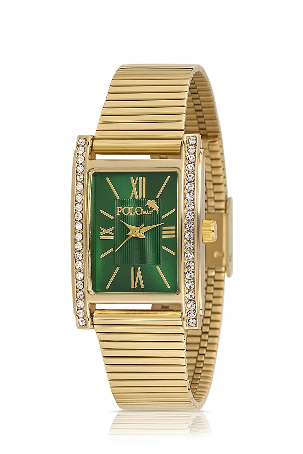 ساعت مچی زنانه Polo Air Vintage با ترکیب زنجیر و سنگهای زرق و برقدار به رنگ طلایی و سبز مدل PL-1499B3