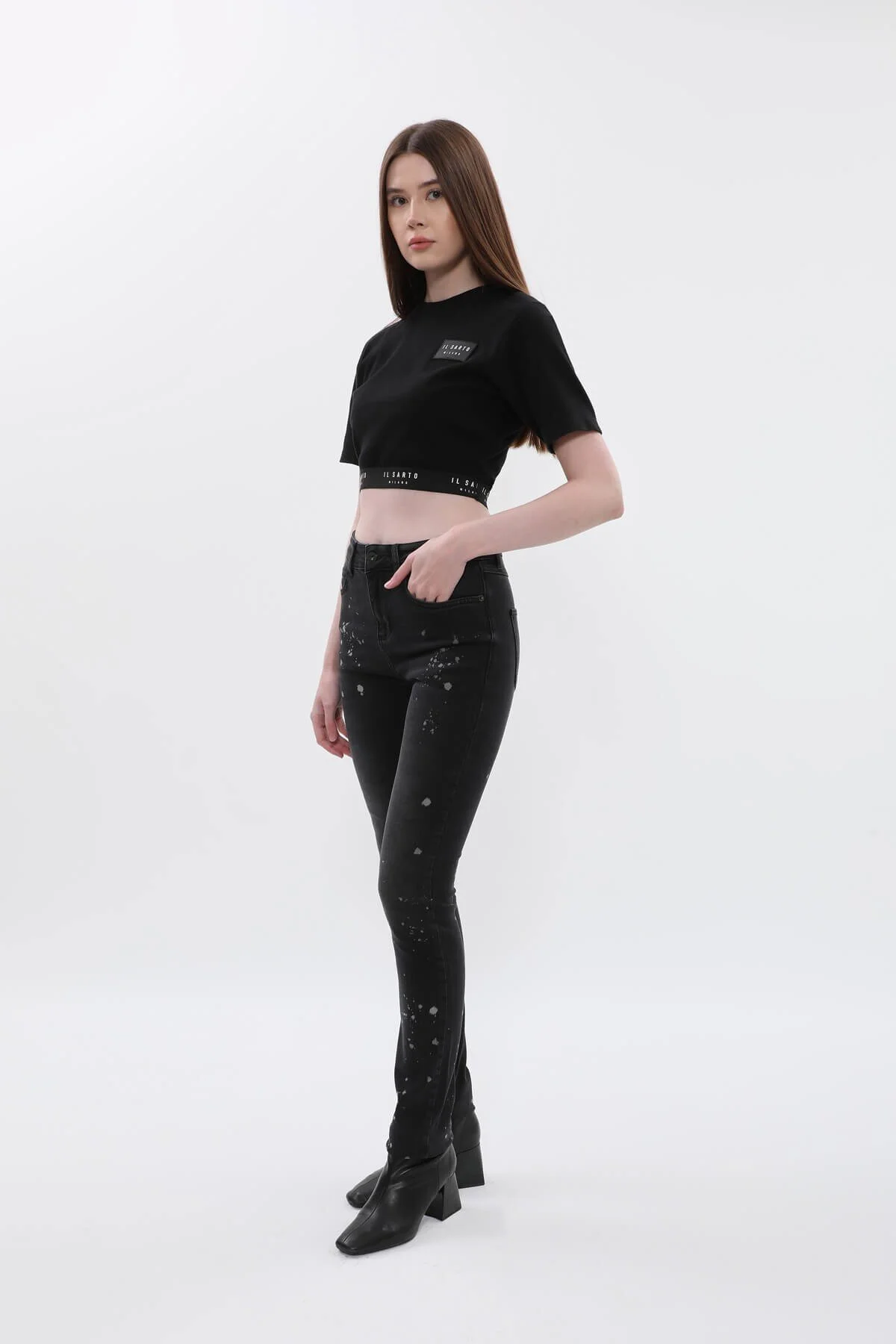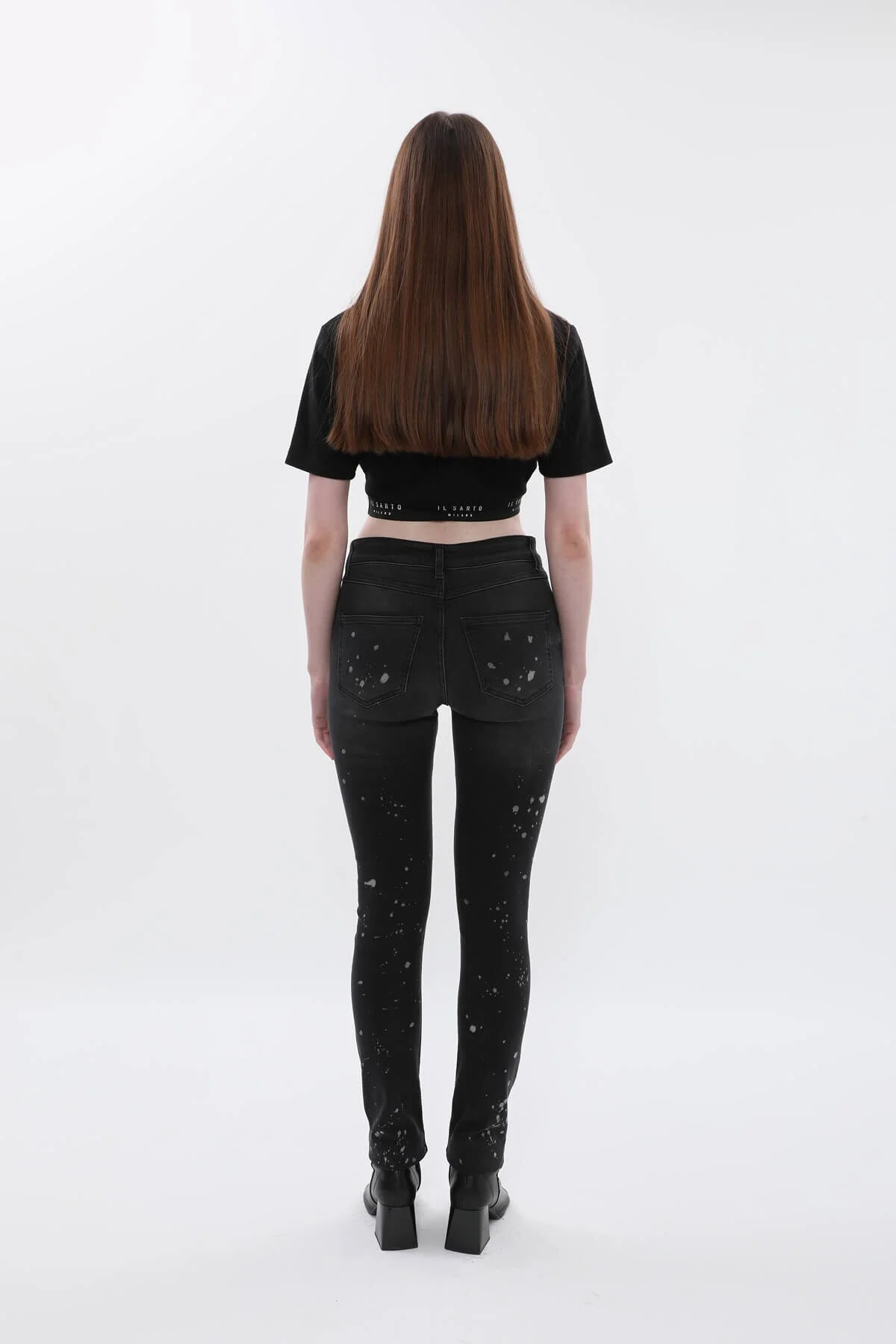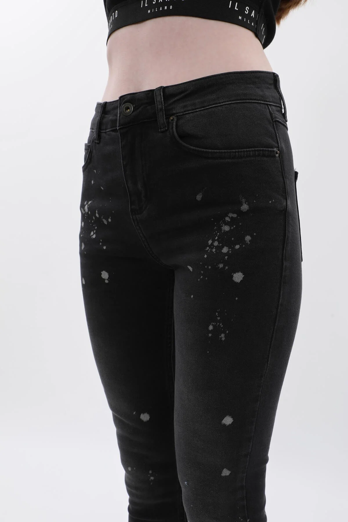شلوار جین تنگ زنانه با طرح خال‌دار و کمر بلند Blue White