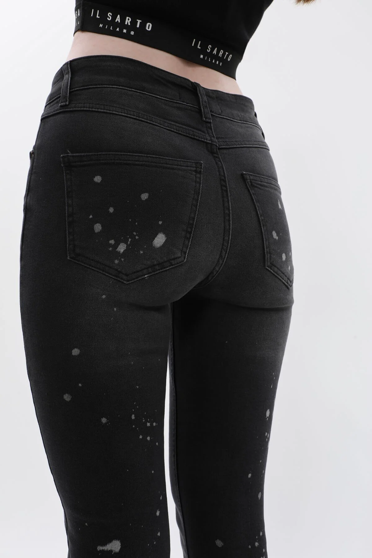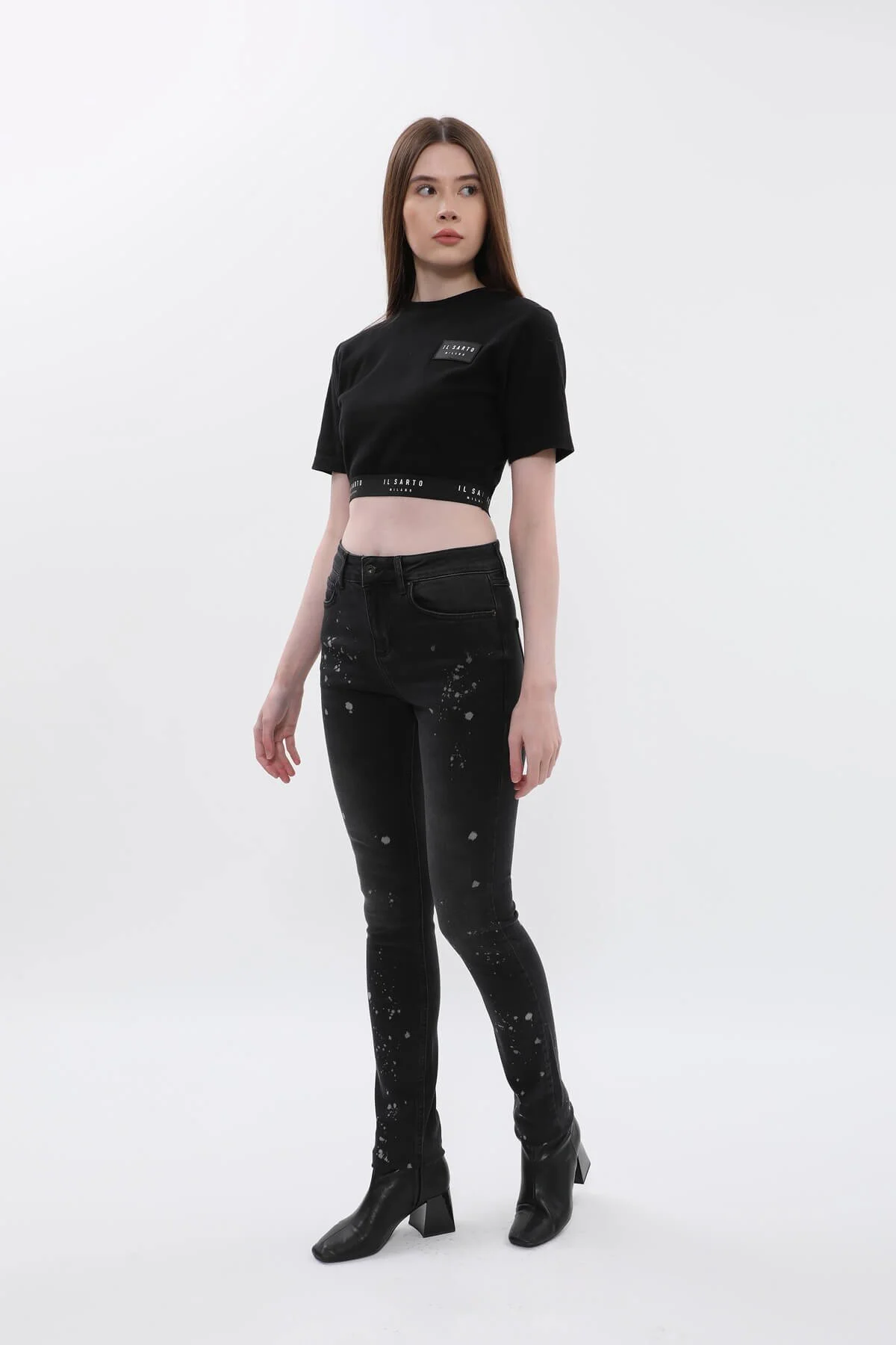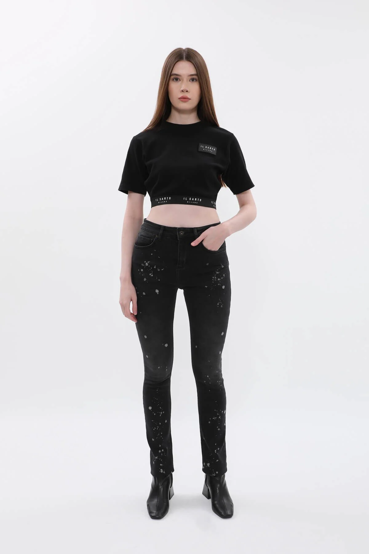 شلوار جین تنگ زنانه با طرح خال‌دار و کمر بلند Blue White
