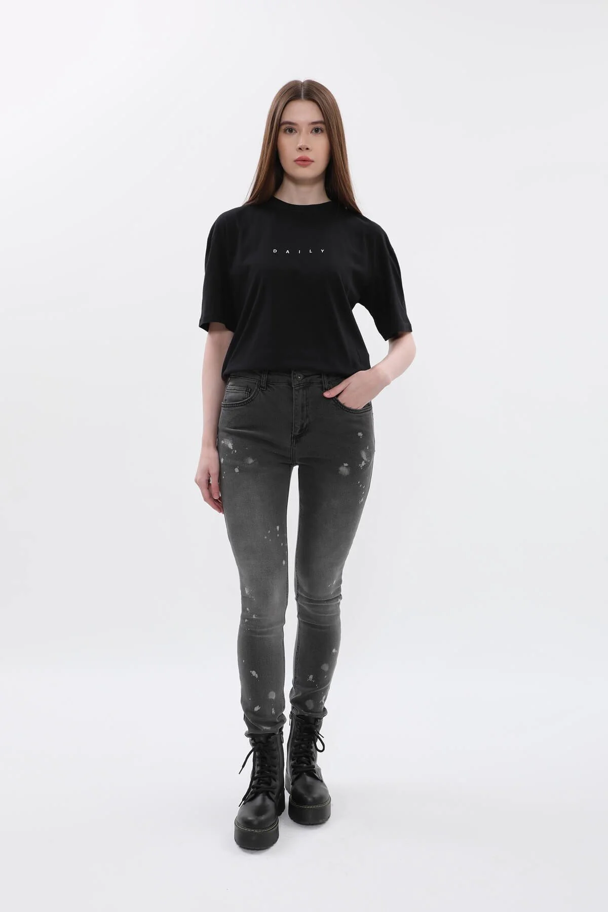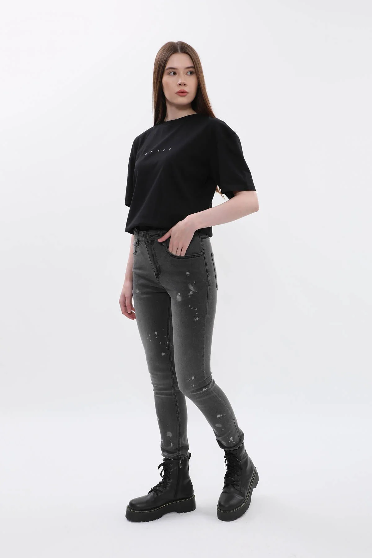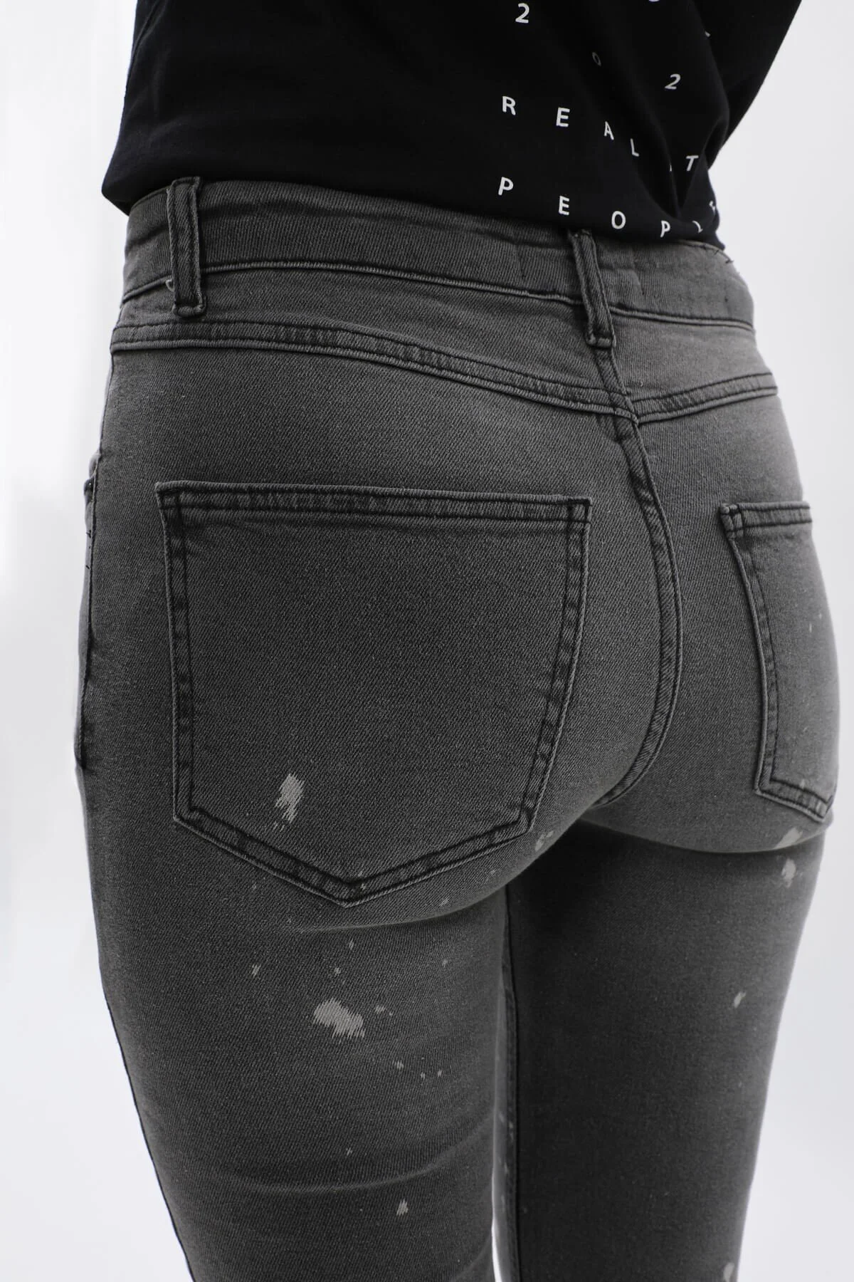 شلوار جین زنانه خاکستری با فیت اسلیم و کمر بلند Blue White