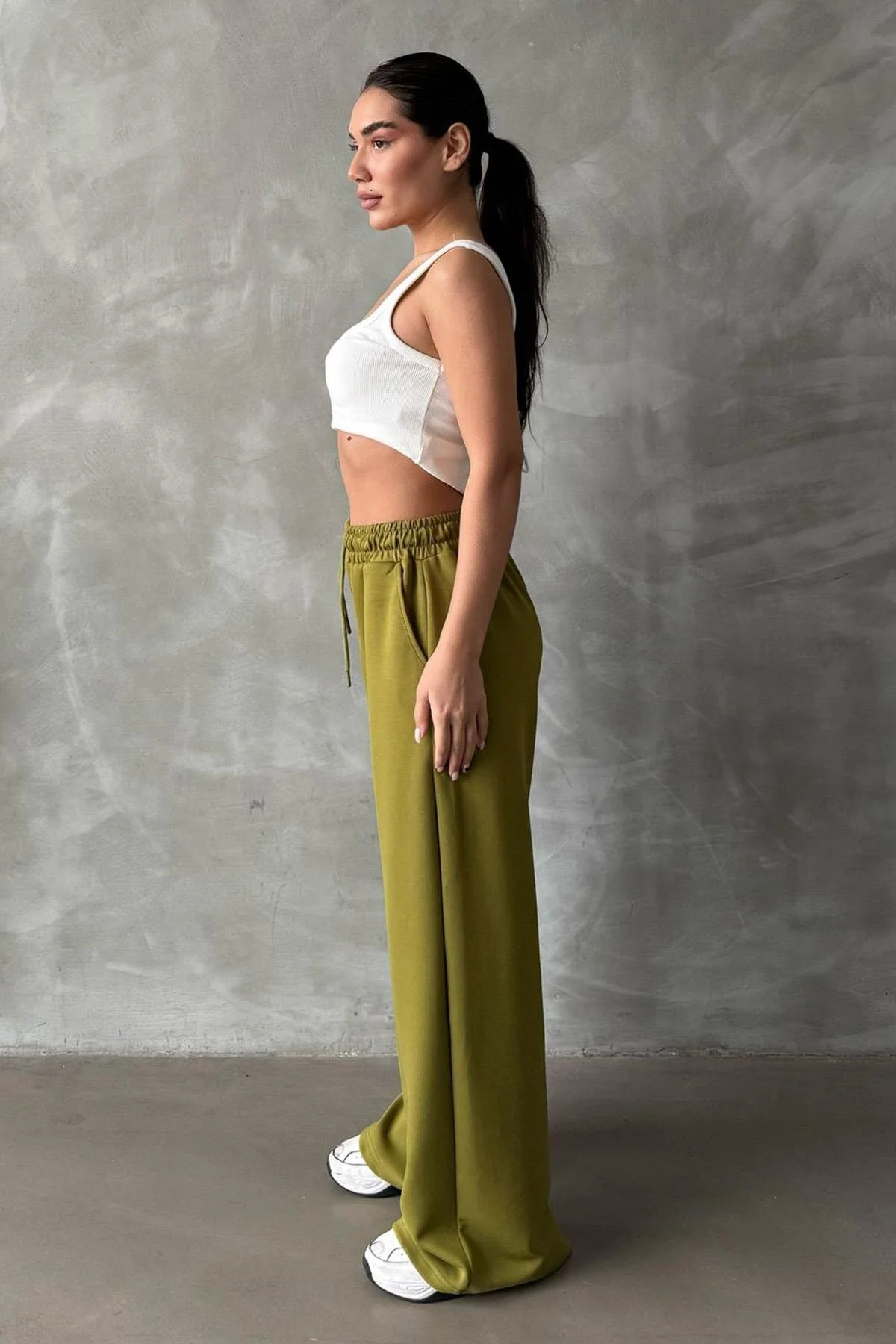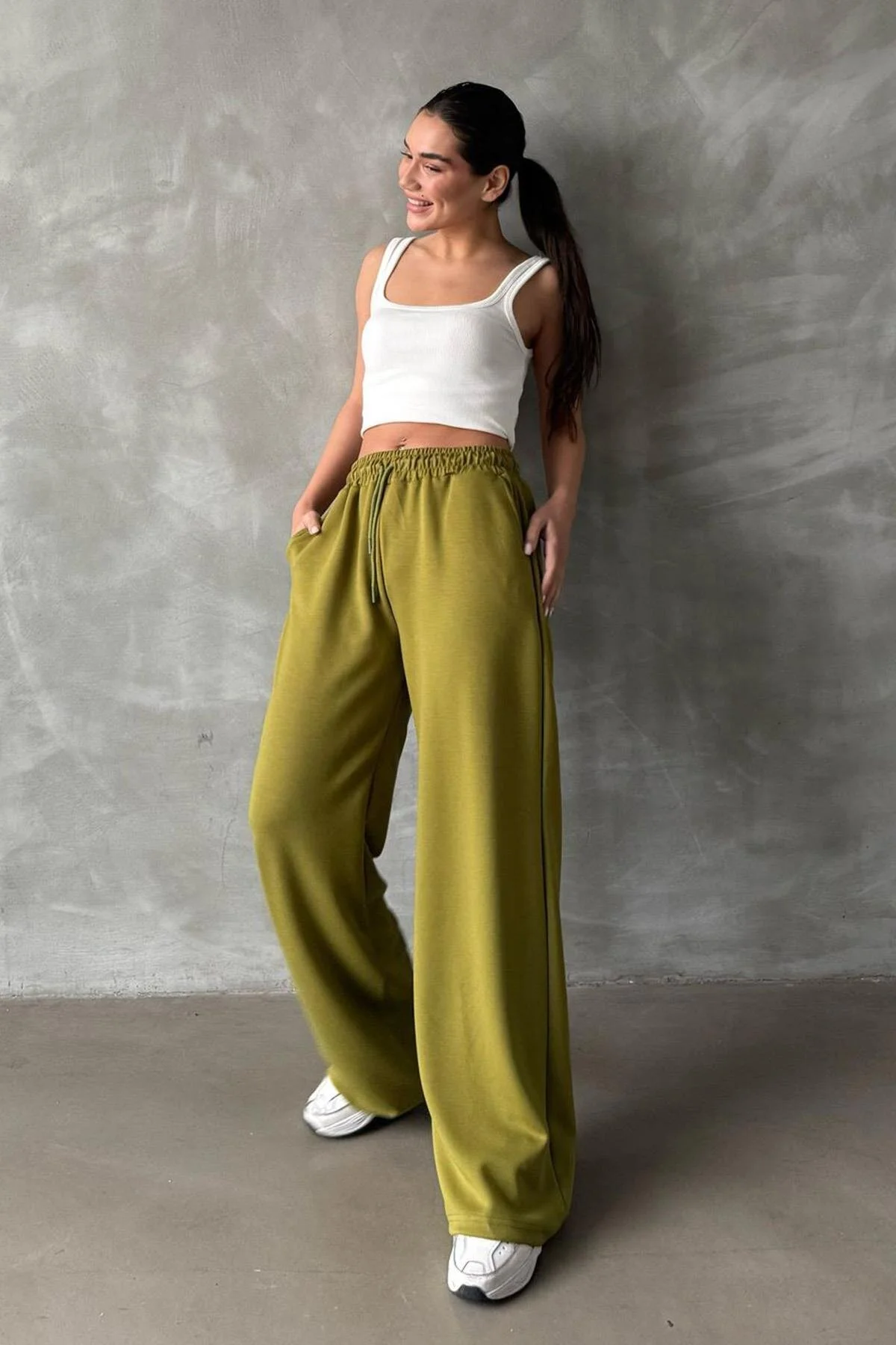 شلوار ورزشی زنانه مدمتکس با رنگ پستهای و پاچههای گشاد MG2122