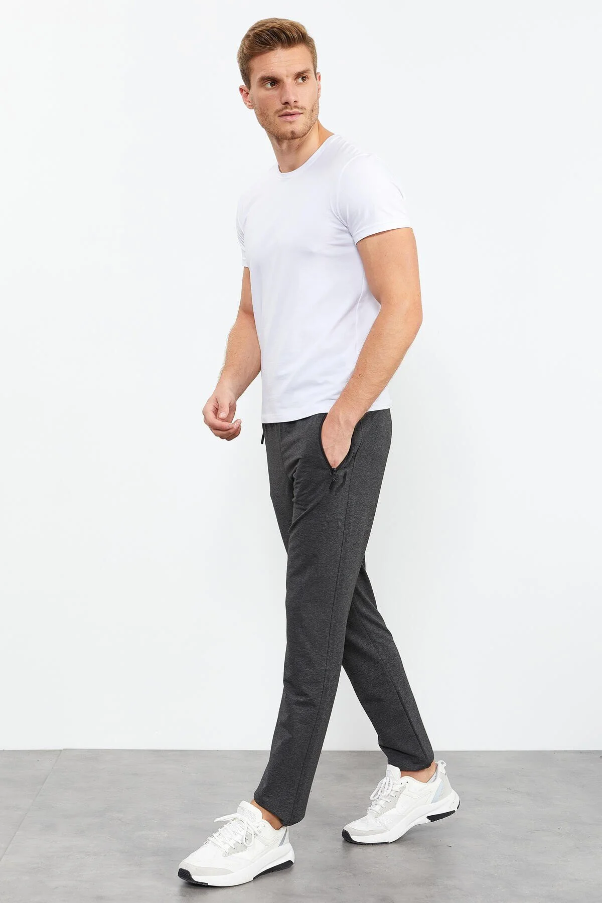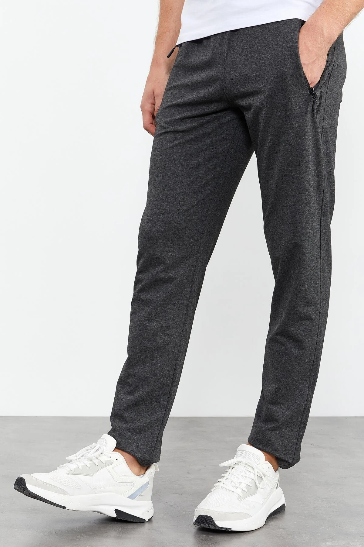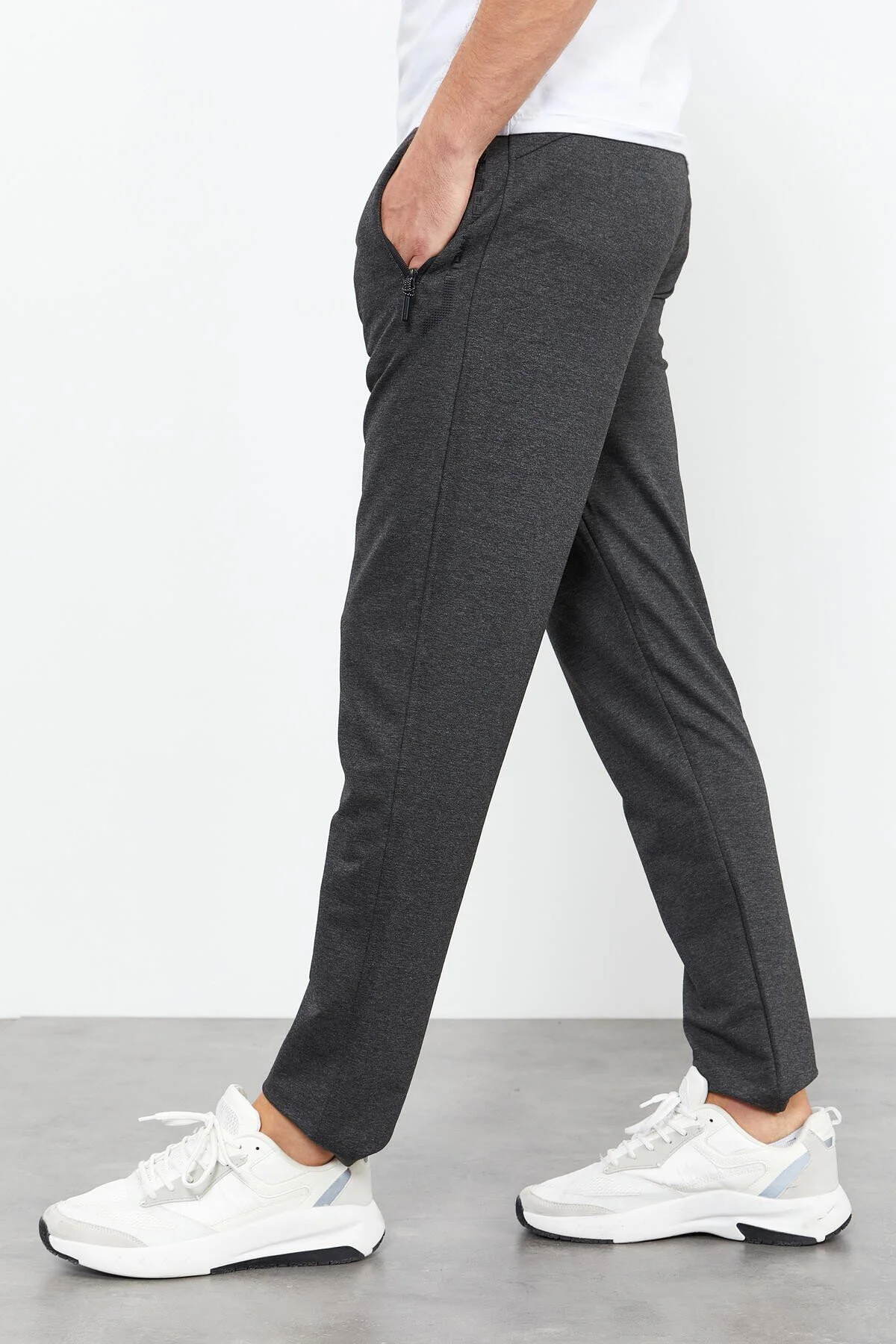 شلوار ورزشی مردانه TOMMYLIFE با طرح زیپ و جیب، رنگ آنتراسیت ملانژ مدل 84744