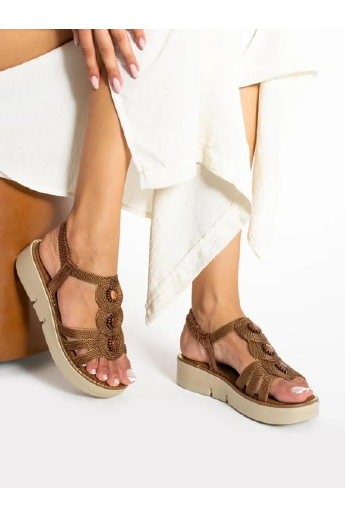 صندل زنانه با پاشنه ضخیم و جزئیات مرواریدی Feles