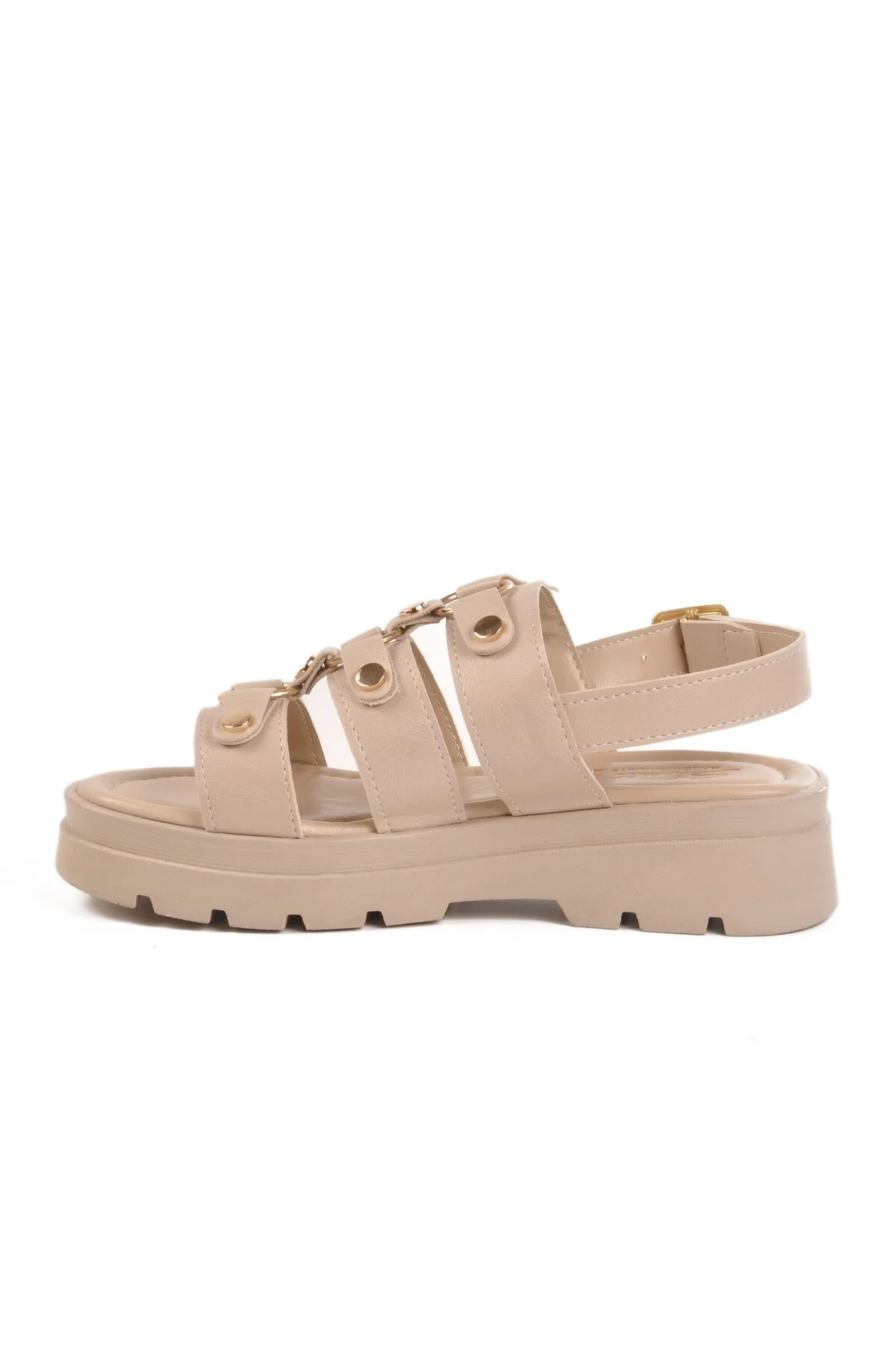 صندل زنانه با کفی ضخیم Ayakmod مدل T-007 Z رنگ بژ