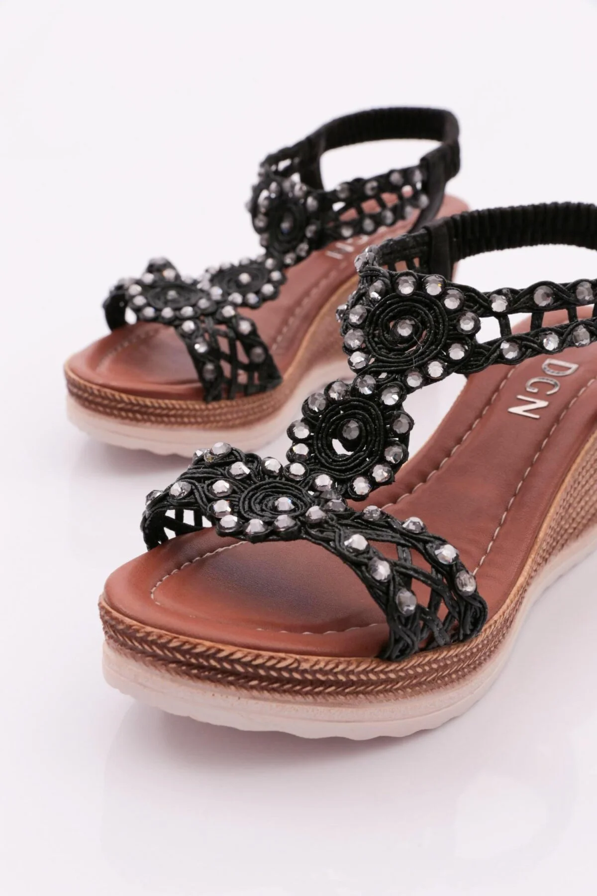 صندل زنانه DGN مدل 1042 با پاشنه بلند و تزئینات سنگی