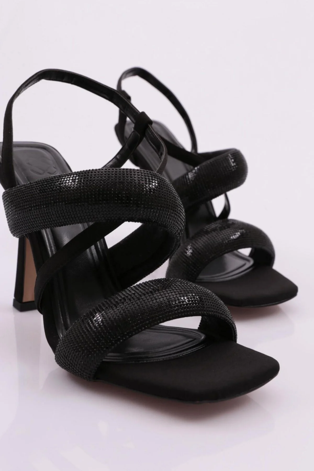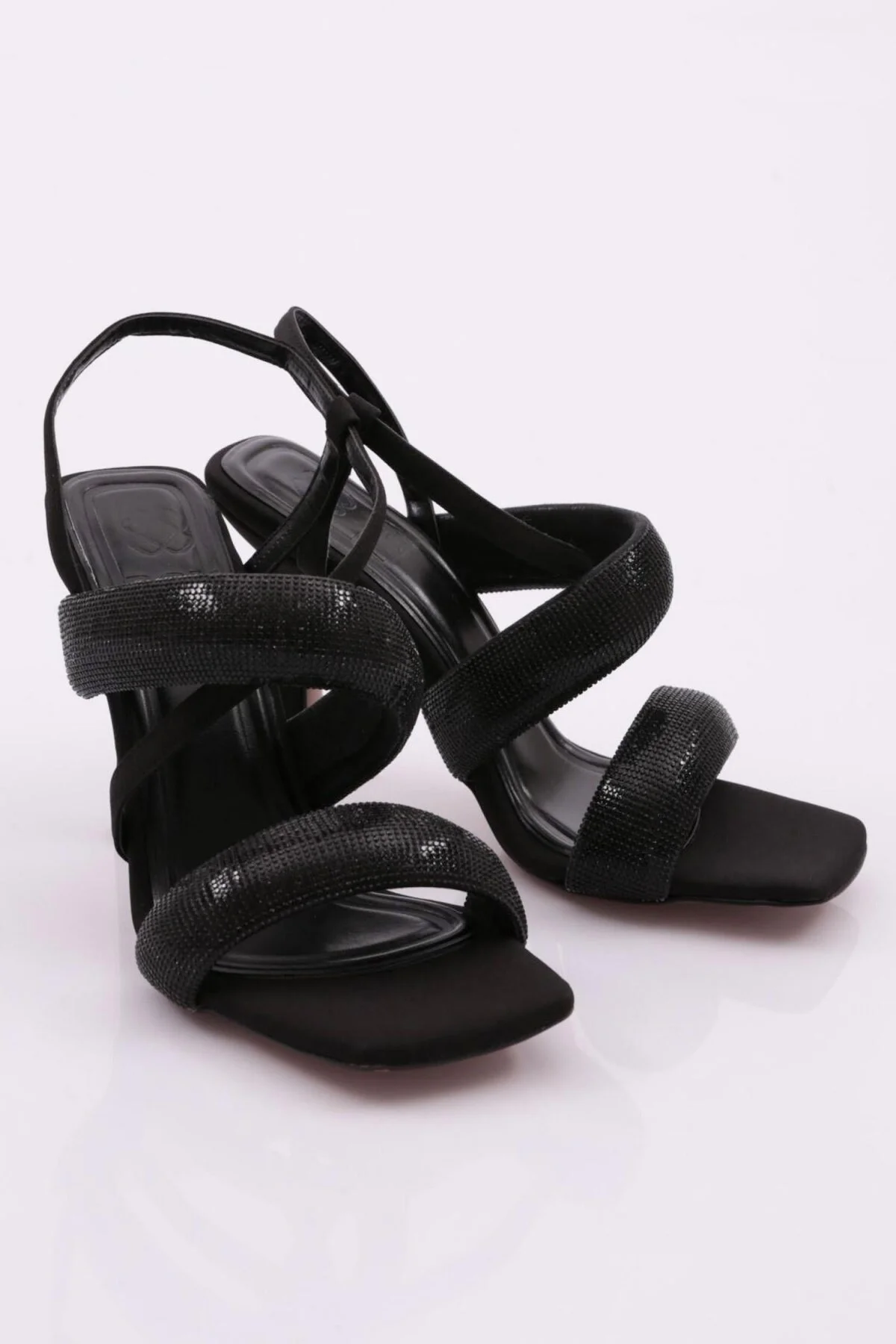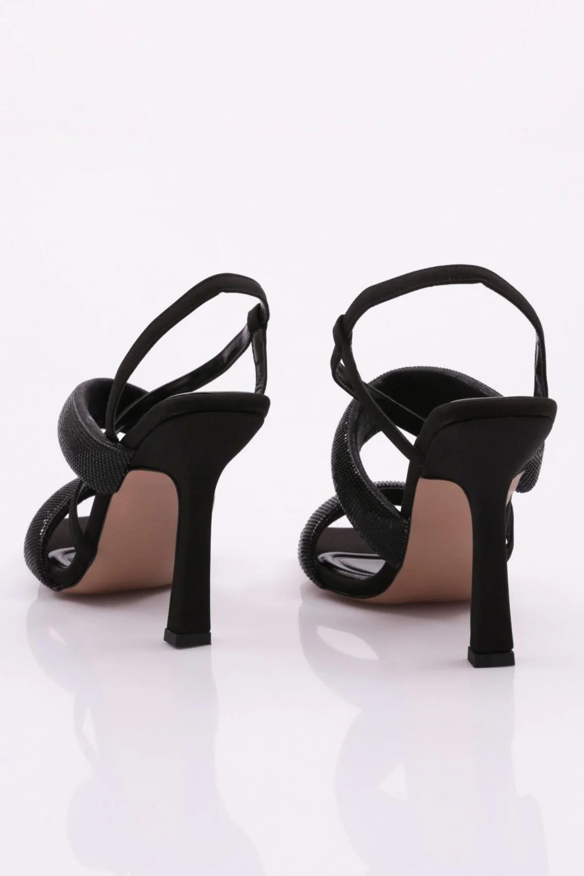 صندل پاشنهدار زنانه DGN 2032 با طراحی شیک و بندهای متقاطع و سنگهای نقرهای