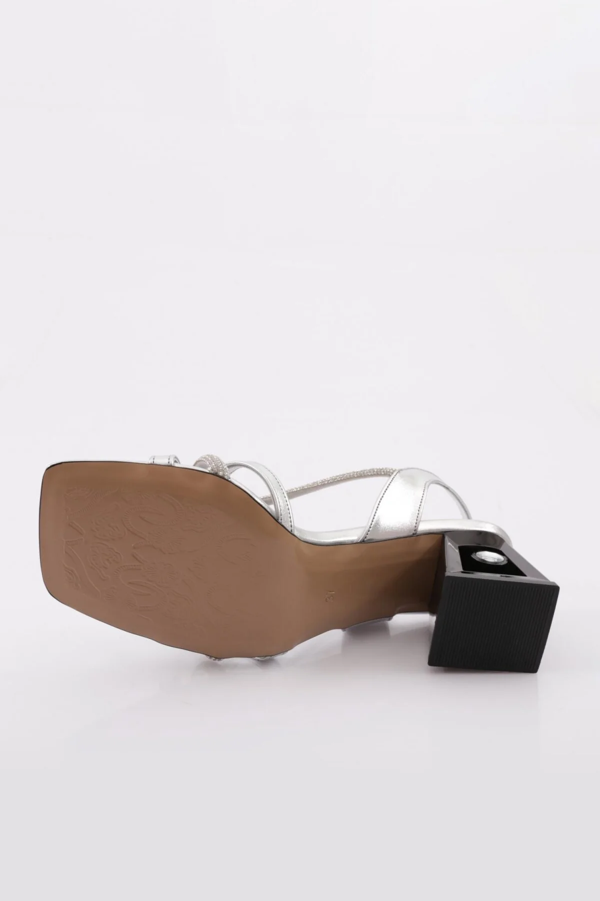 صندل پاشنهدار زنانه DGN 618 با بند نقرهای و سنگدار