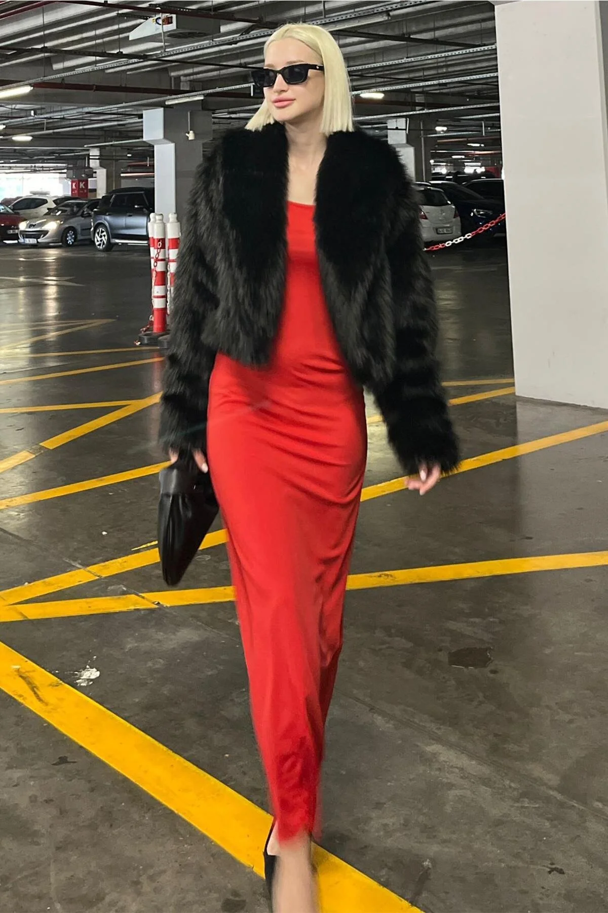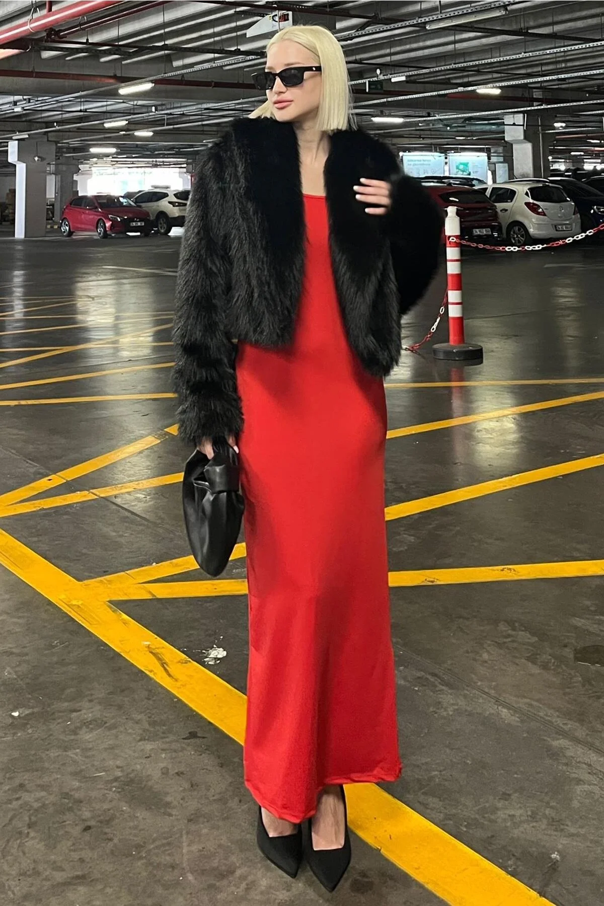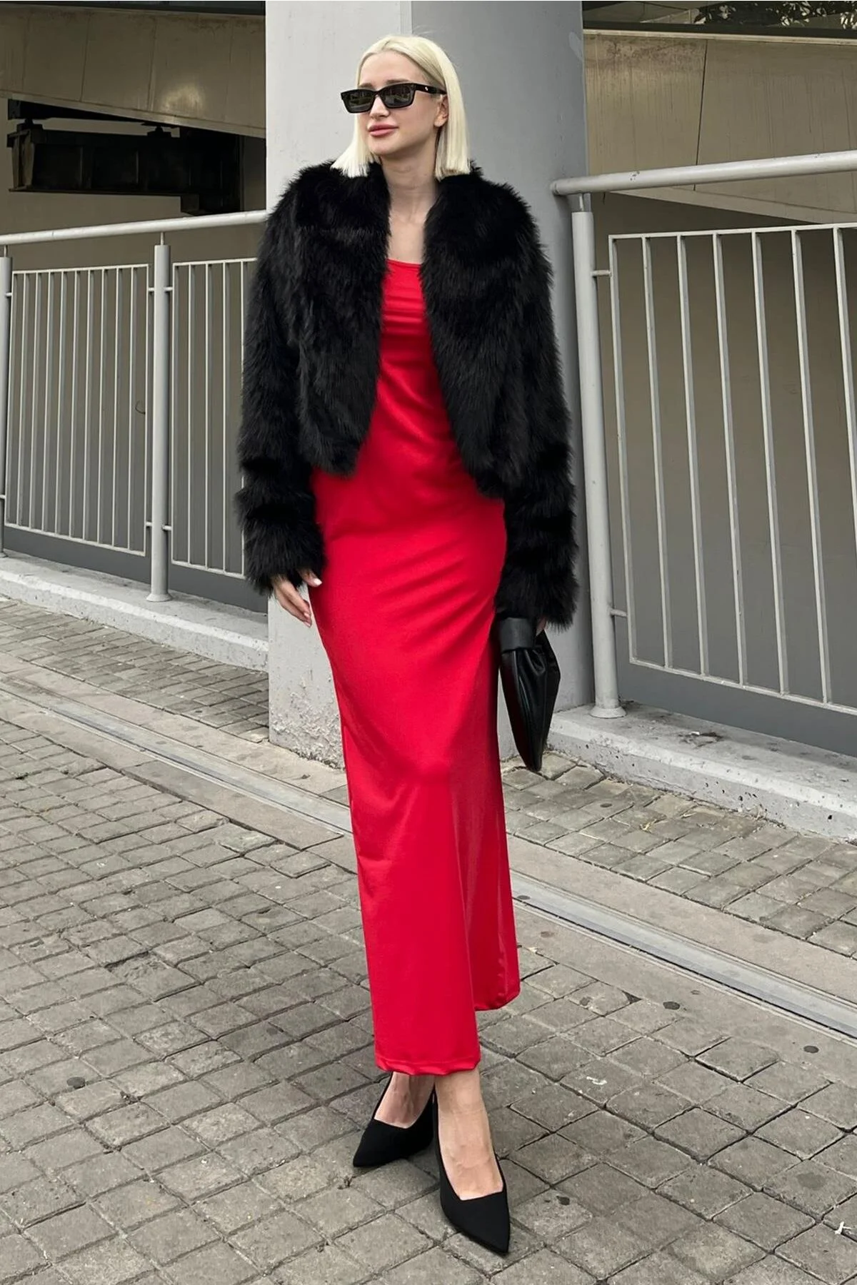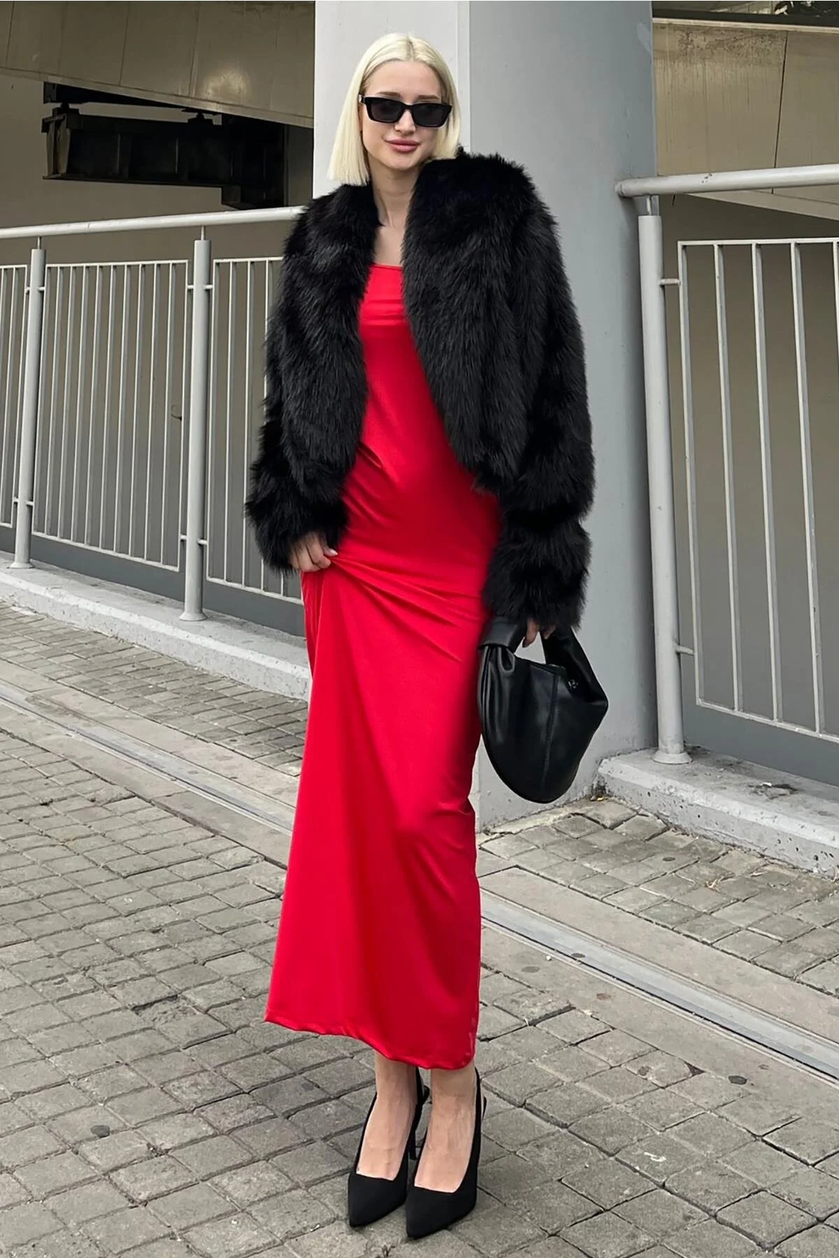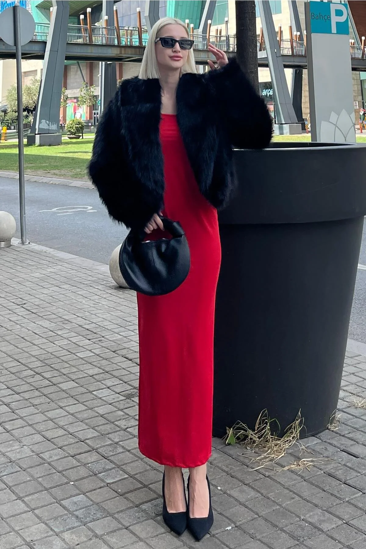 پالتو زنانه مادمکس با یقه کروات و پارچه نرم به رنگ مشکی MG2175