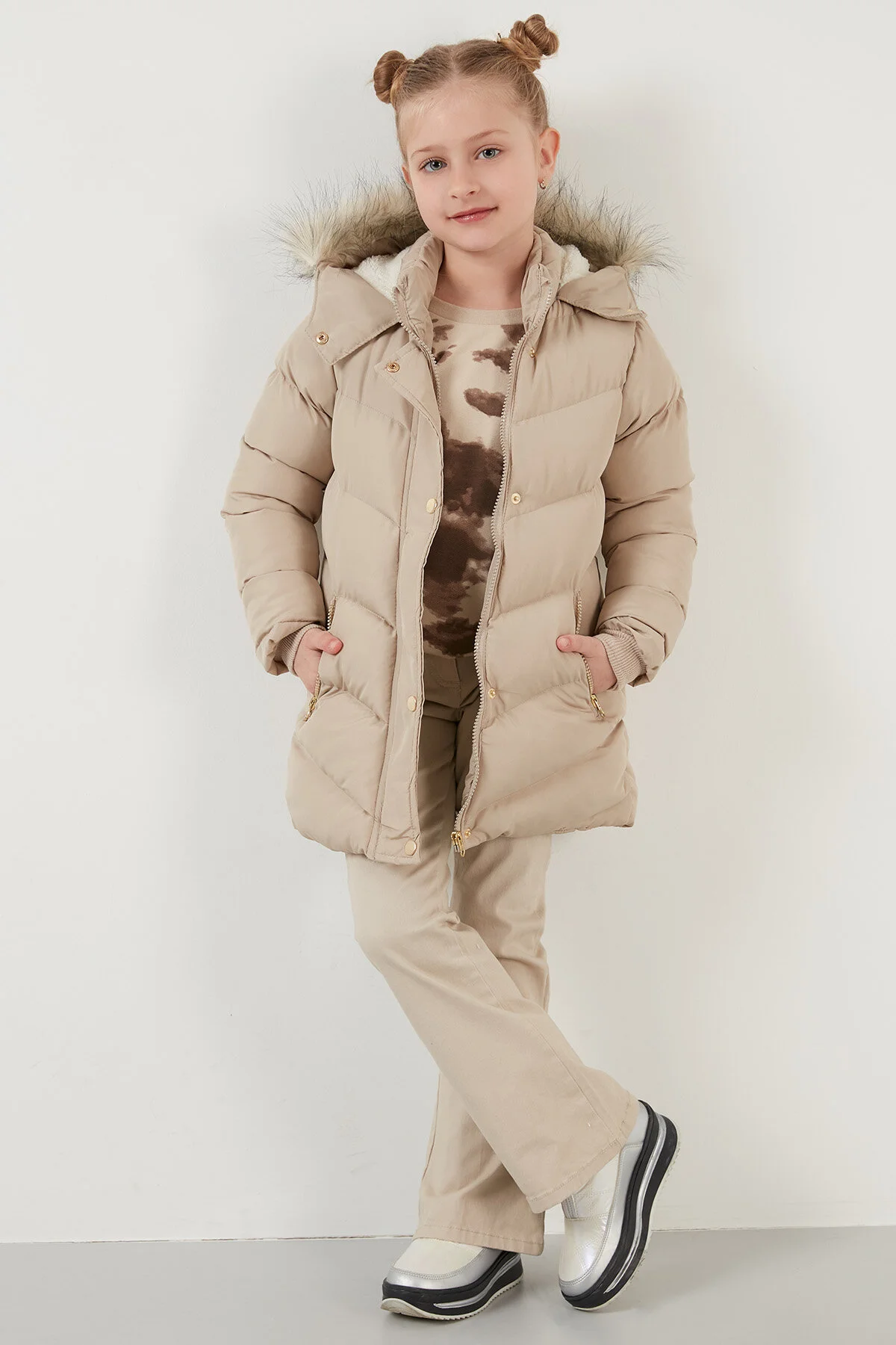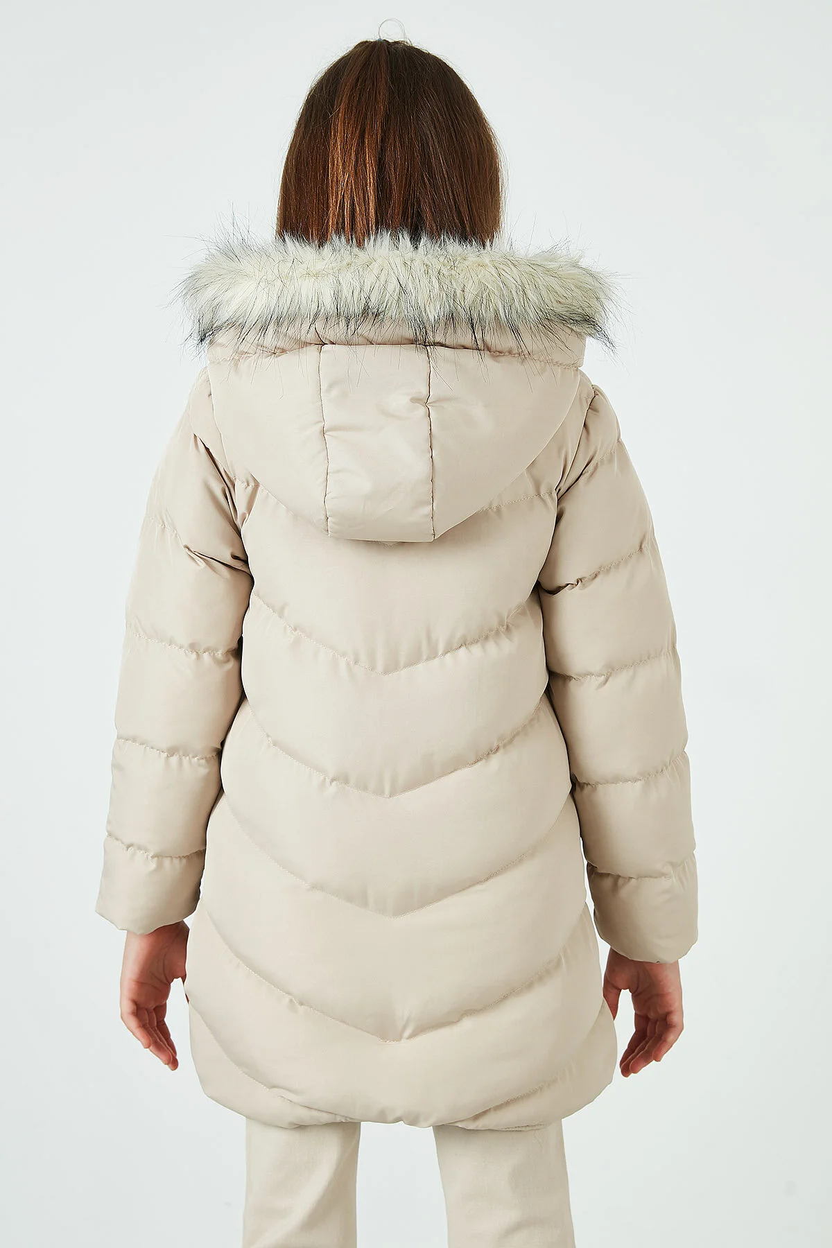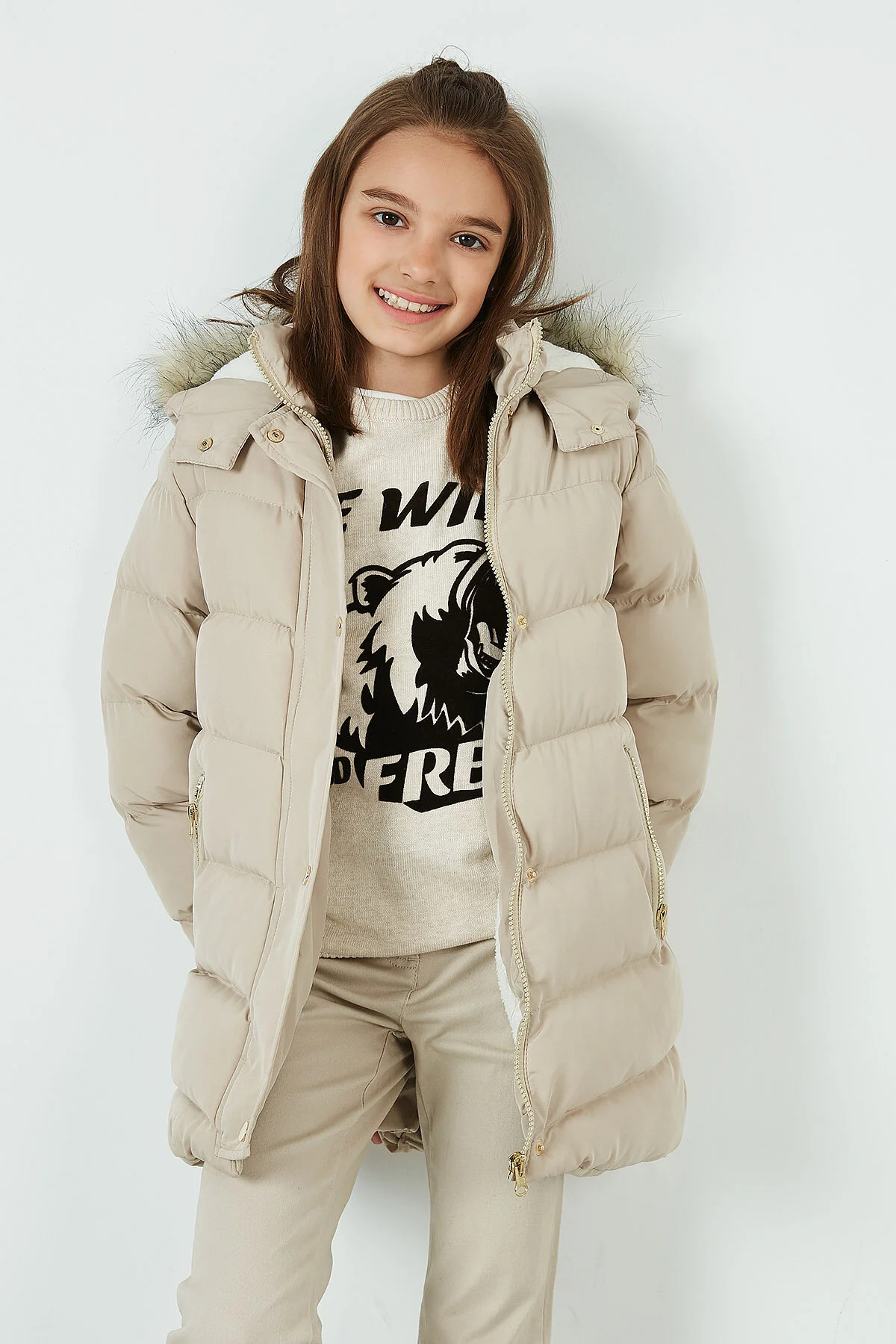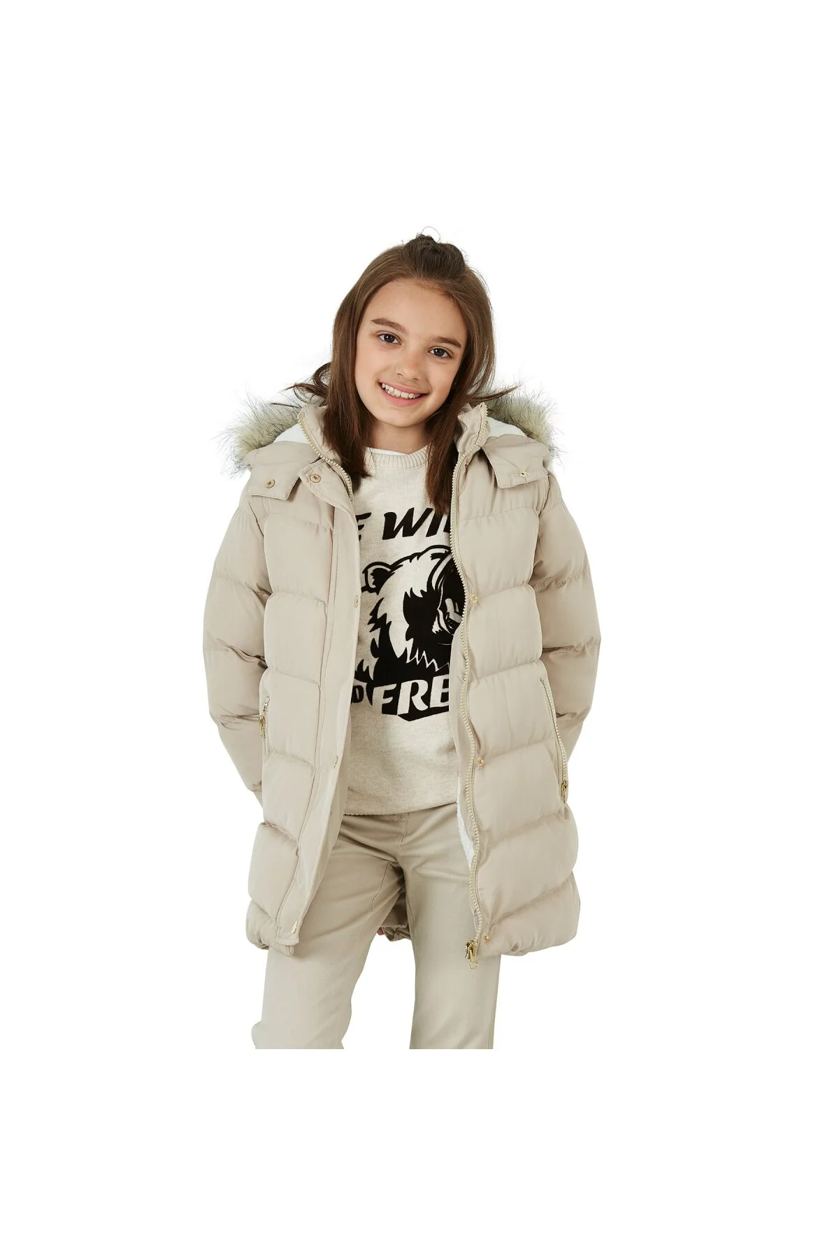 کاپشن دخترانه للا مدل 6035018 رنگ سنگی