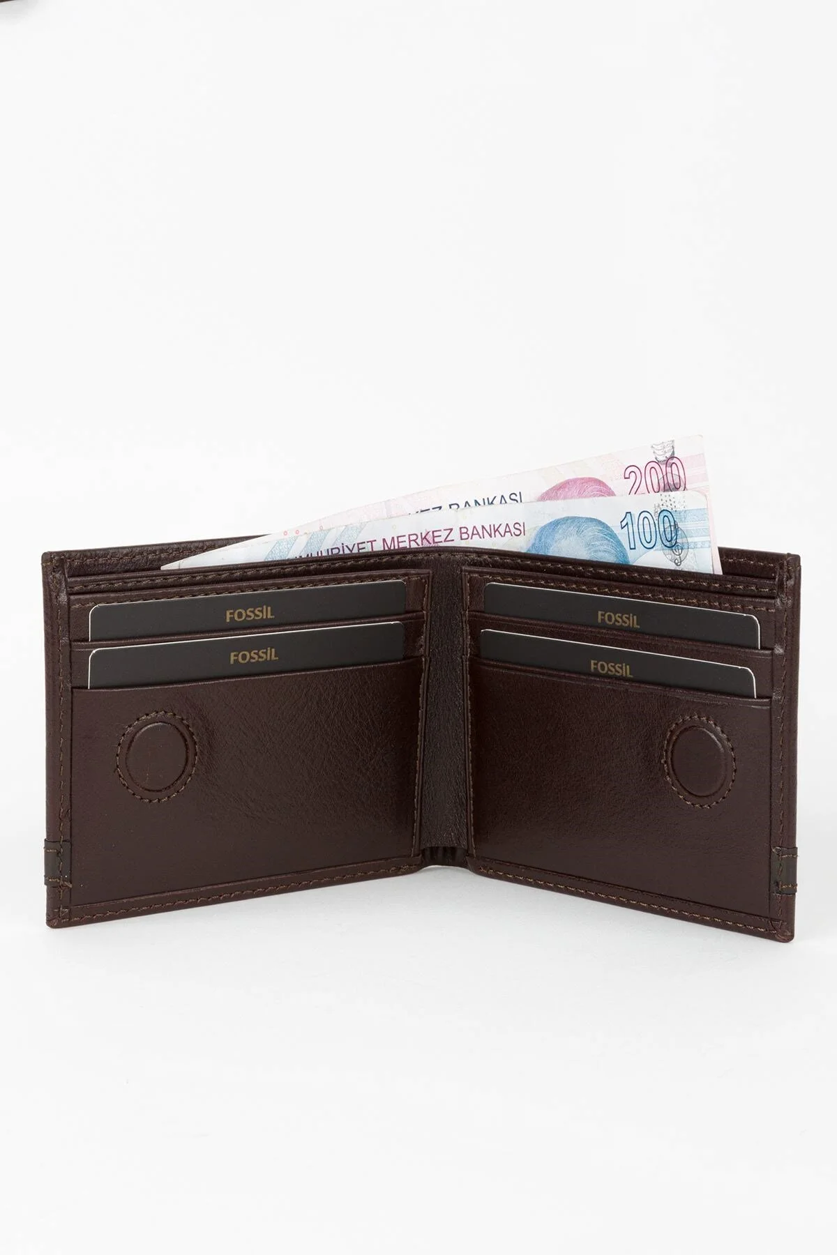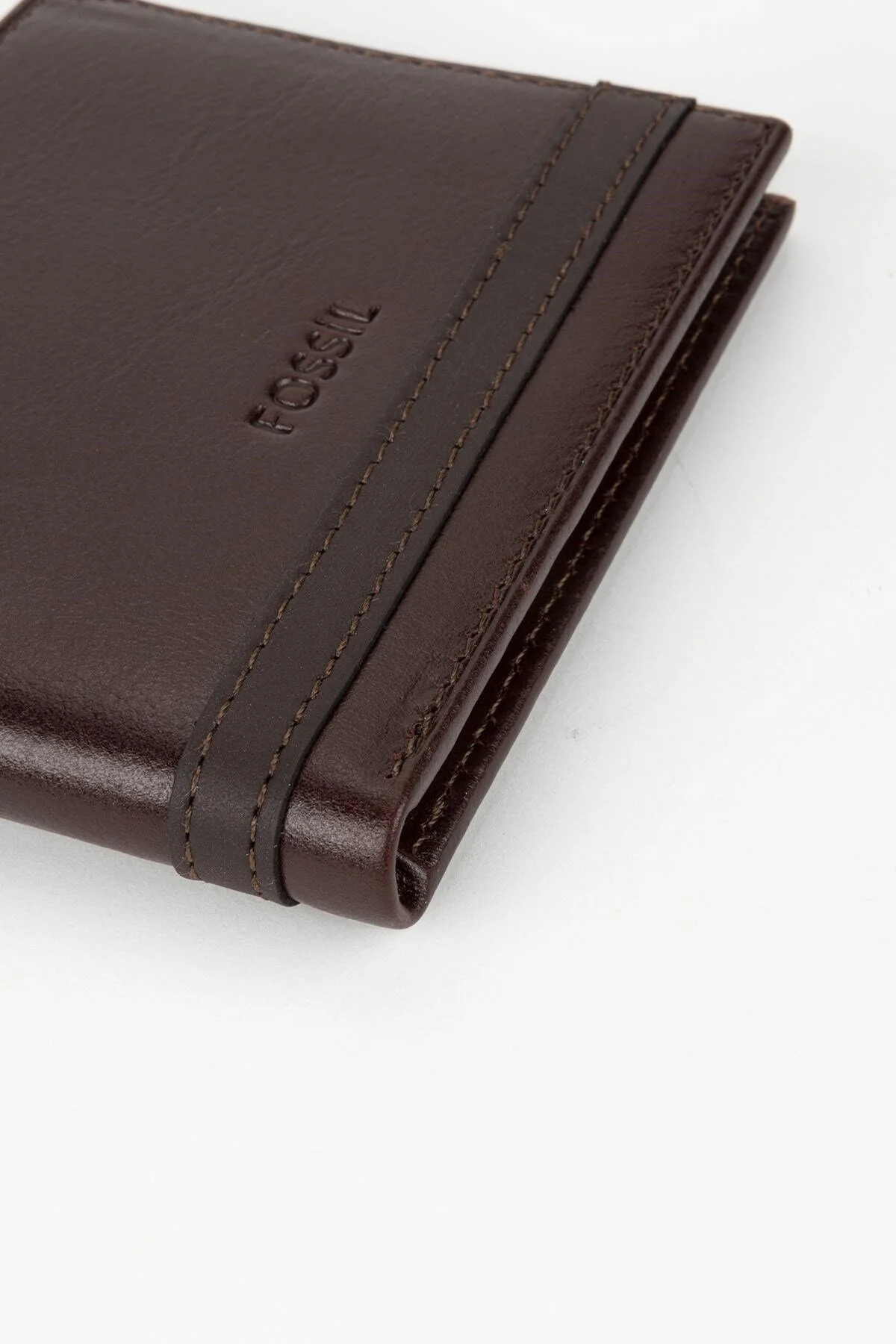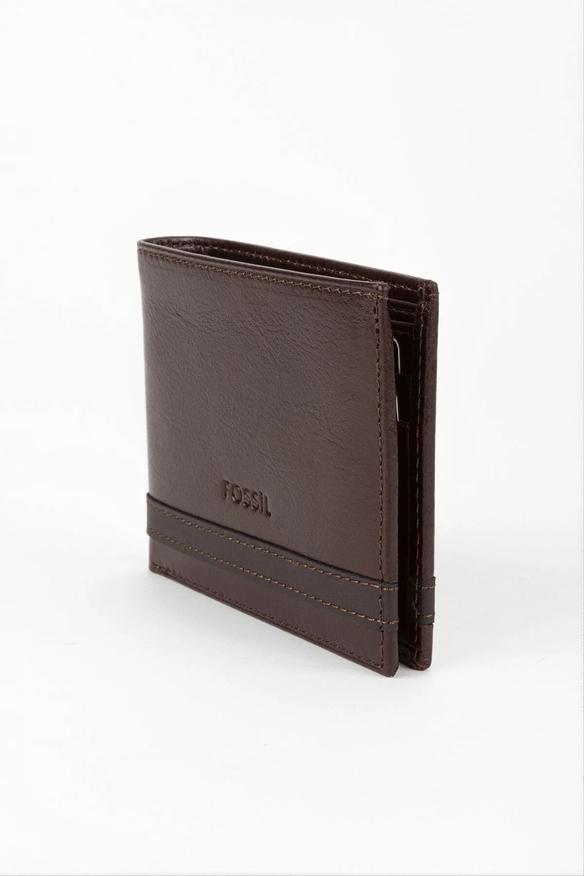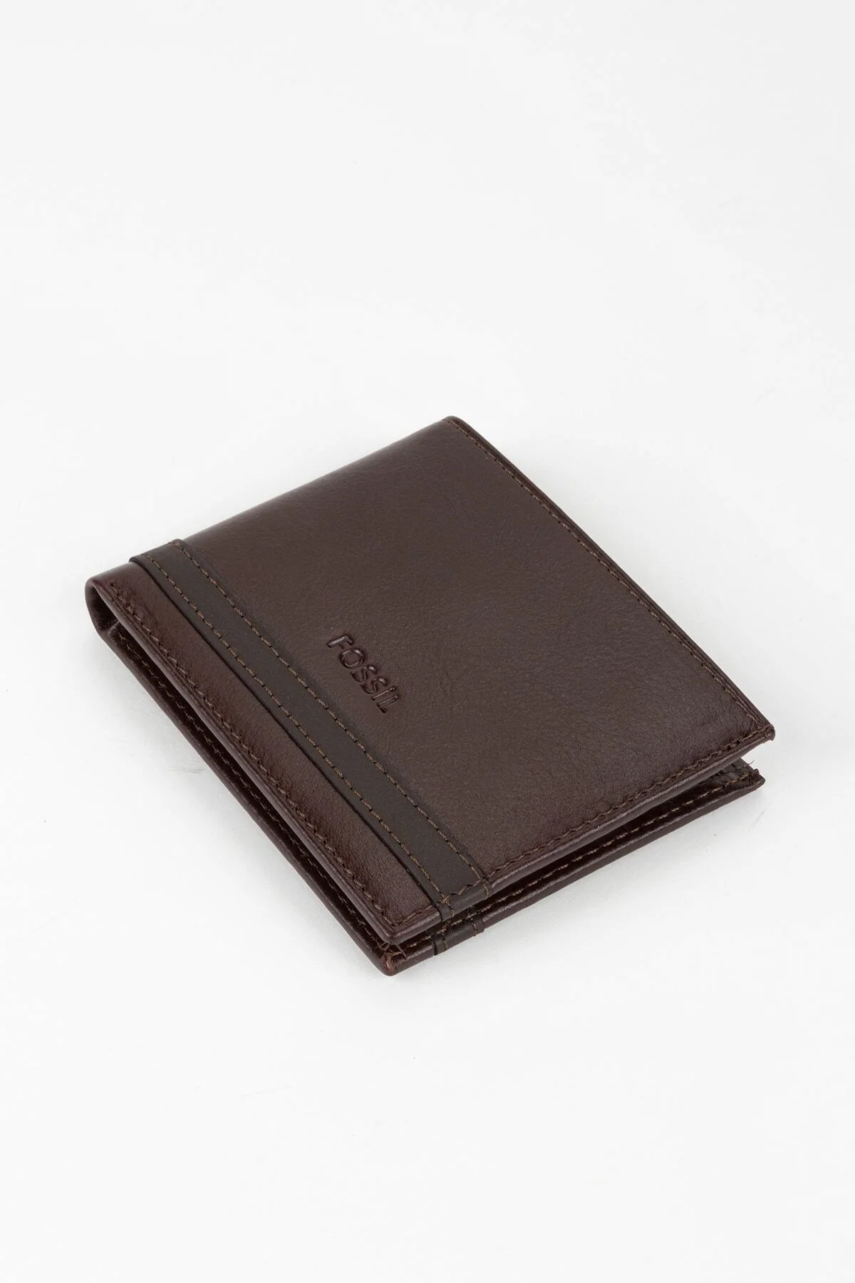 کیف پول مردانه عمودی چرم طبیعی قهوهای فسیل با جعبه