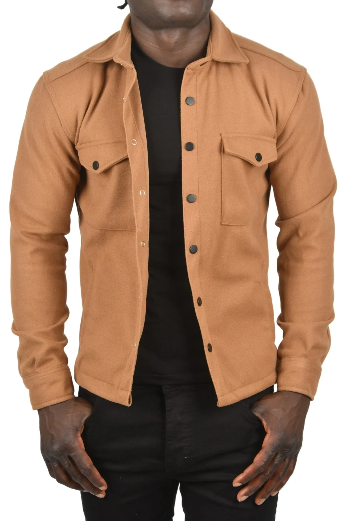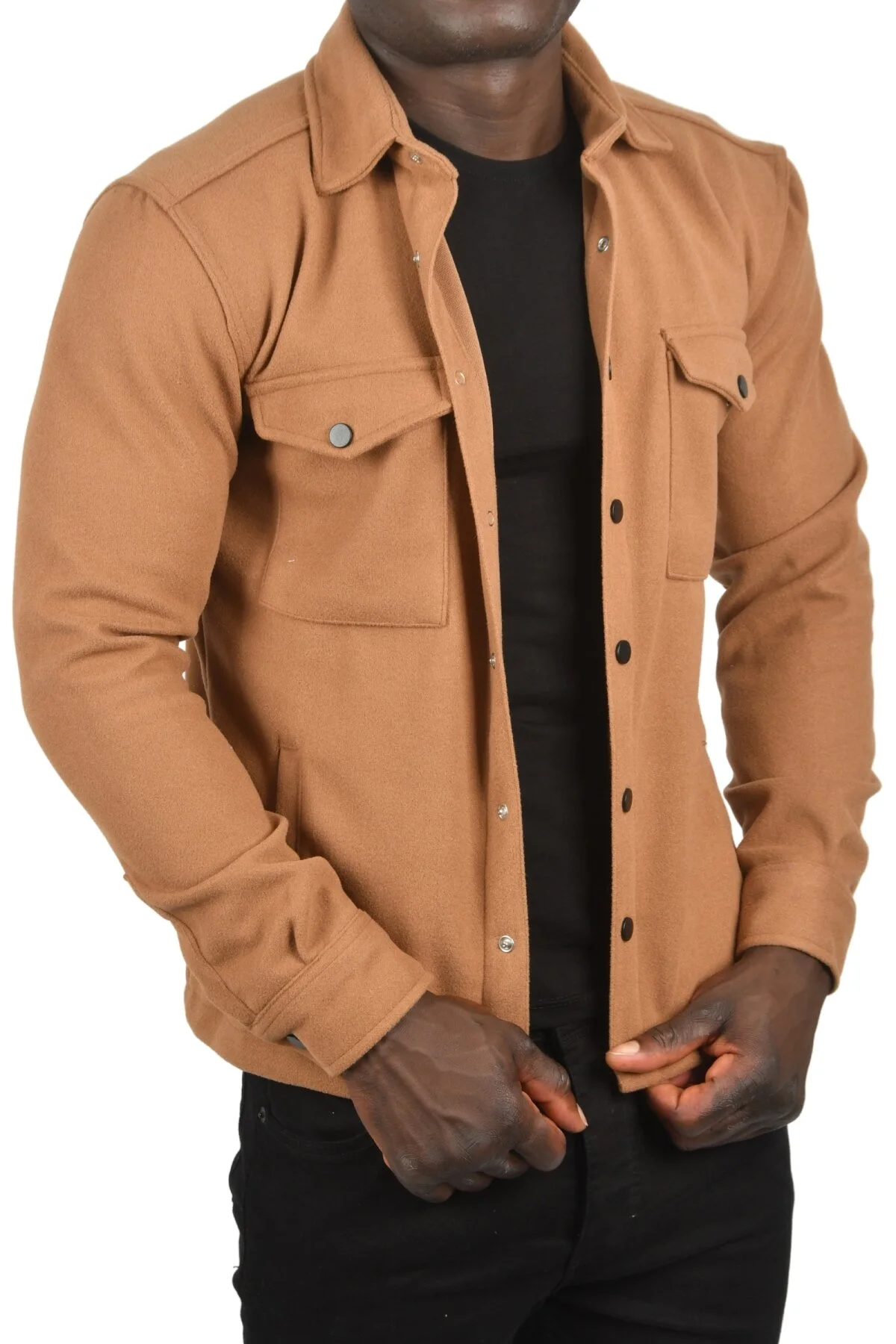کاپشن مردانه دیپسی، رنگ قهوهای، دوخت جذب، پارچه پشمی نازک ، دارای جیب دربدار و دکمههای فشاری